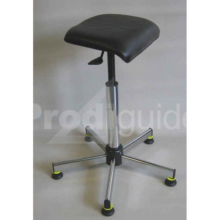 Conforme norme DIN 4550Base de l’assis debout antistatique en acier chromé diamètre 54cm, équipée de 5 patins dissipateurs de charges électrostatiques diamètre 4,5cm.