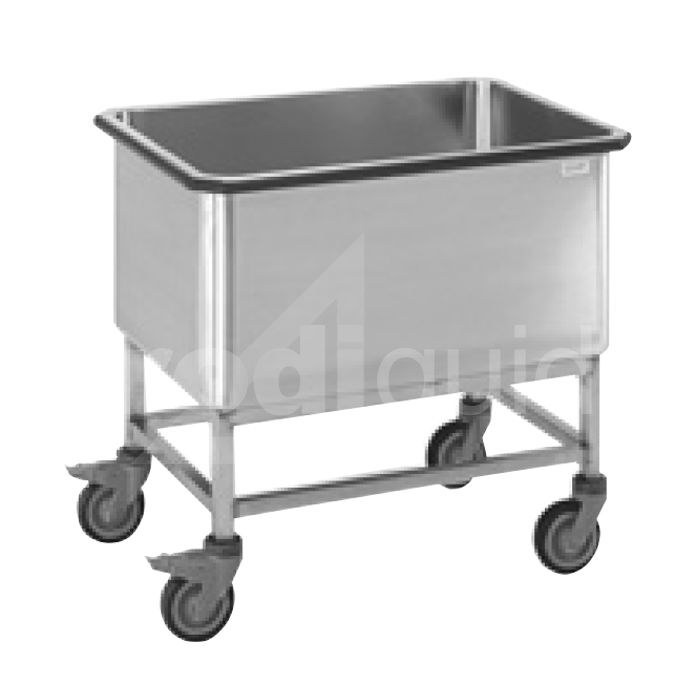 Cette cuve inox surélevée sur roues est équipée d’une bonde à levier et d’une grille d’arrêt. Ses roues pivotantes, dont 2 à frein, sont à chape polyamide.