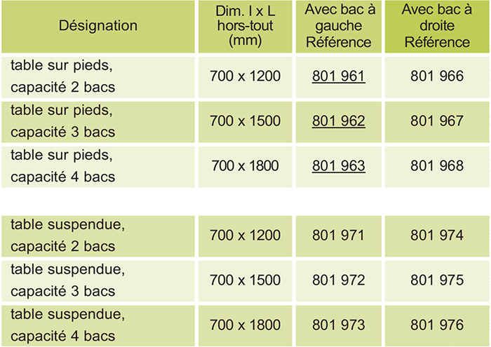 - Hauteur 900 mm (tables sur pieds).
